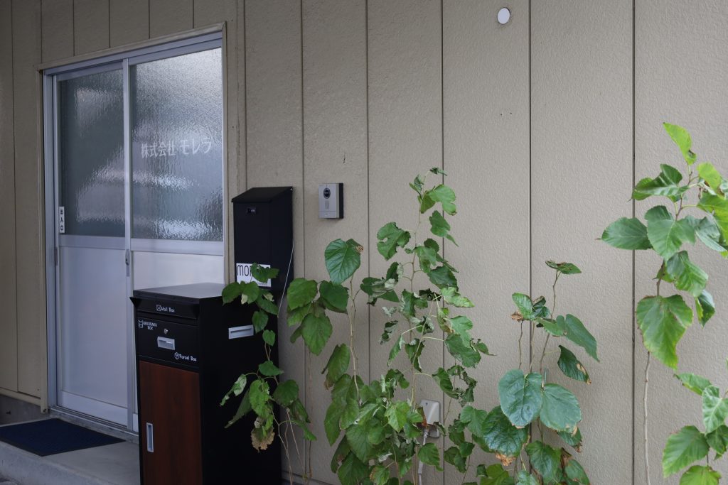株式会社モレラの社屋は一見すると普通の事務所のような建物に見えますが、一枚ドアを開けるとそこにはライトに照らされた桑がずらりと並ぶ植物工場が広がっています。通常、桑の葉は冬になると葉が落ちてしまいますが、この植物工場内は常時、桑にとって最適な成育環境が管理されているため、桑を一年を通じて常に栽培ができるようになっています。工場内で水耕栽培されている桑は、土を使わず屋内で育てられているため、大気や土壌の汚染、害虫等の影響を受けることなく、完全無農薬の状態で育てられます。