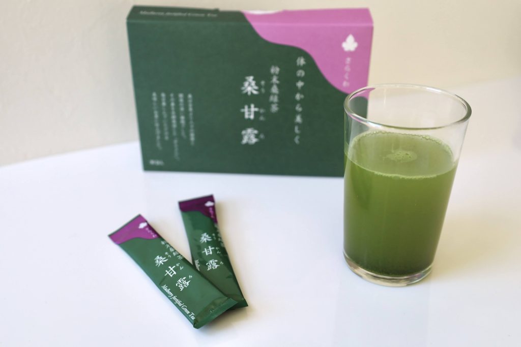 この水耕栽培された桑の葉を利用したお茶「桑甘露」は、食事前などに飲用することで糖質や脂質の吸収を抑える効果があり、パウダー状になっているため、お湯やお水に溶かして食べたり、ヨーグルトや牛乳に混ぜて食べるのもおすすめです。