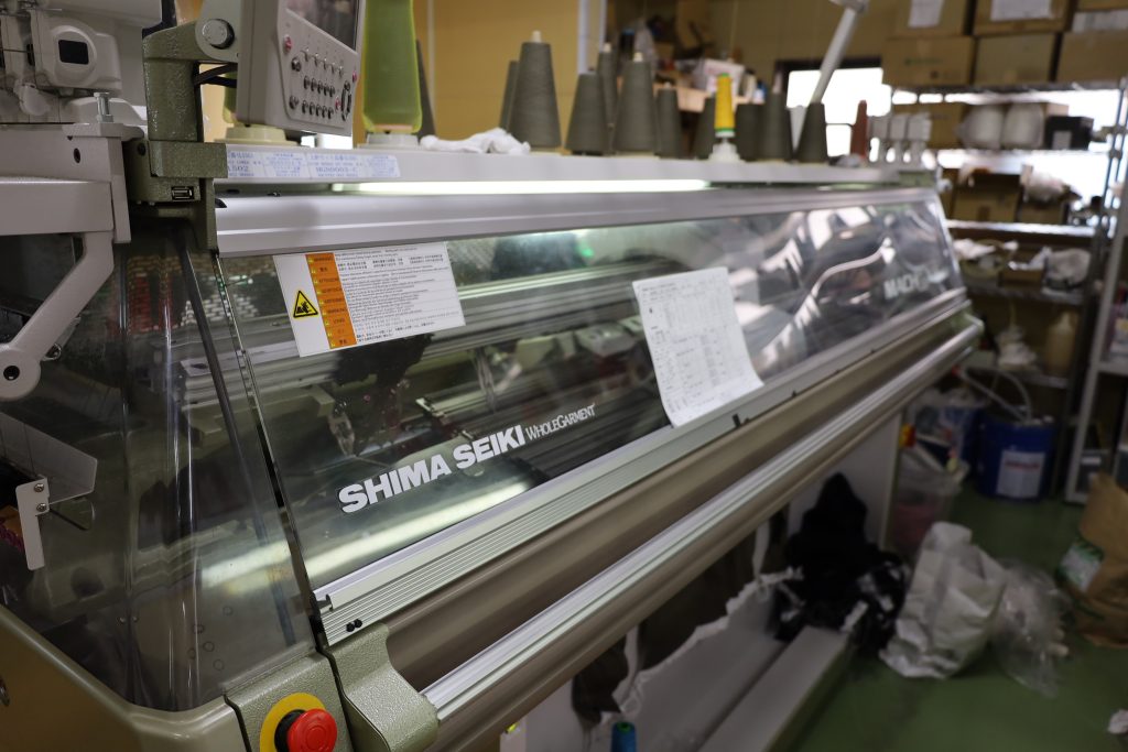 最初は試しにハイゲージ(編み目が細かく密)のホールガーメントの編み機を2台導入しました。ホールガーメントの編み機を先行導入をしていた山梨のニットメーカーさんの下請けのお仕事を頂いて、自分で試作を繰り返して形にしていきました。